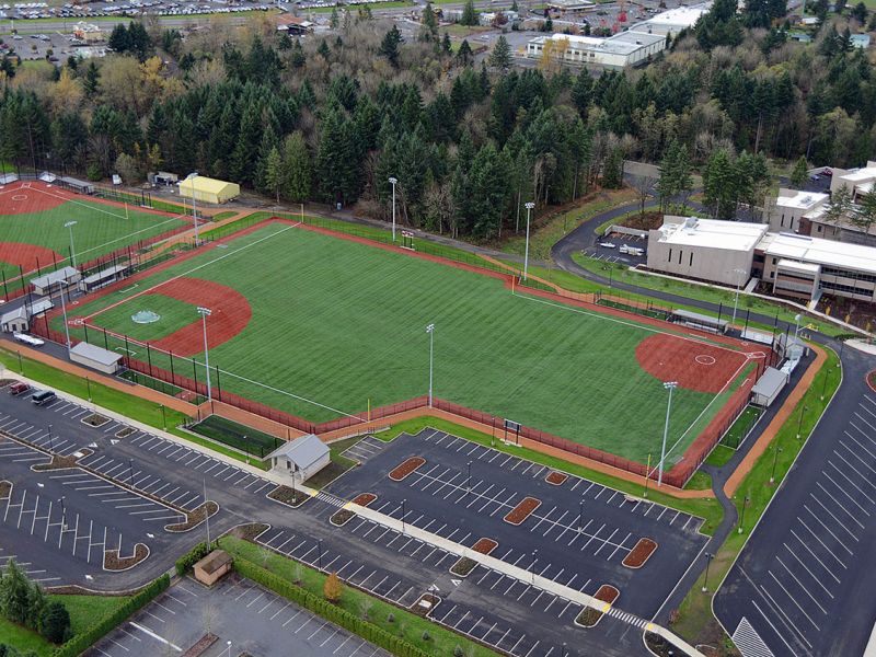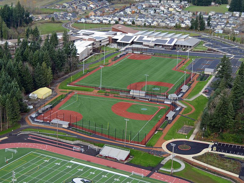 Project involved complete master plan construction for expanded sports fields and support buildings for the new Sandy High School. Work included approximately 400,000 sf of new synthetic turf installed at Football Field and both Varsity and JV Baseball and Softball Fields. Additionally, the existing track was rebuilt and resurfaced along with construction of other track and field event areas. Chain link fencing, backstops, boardwalks, bleachers, and athletic equipment were installed concurrent with construction of the fields. Associated support buildings included concession and restroom facilities, storage buildings, and baseball and softball field dugouts.