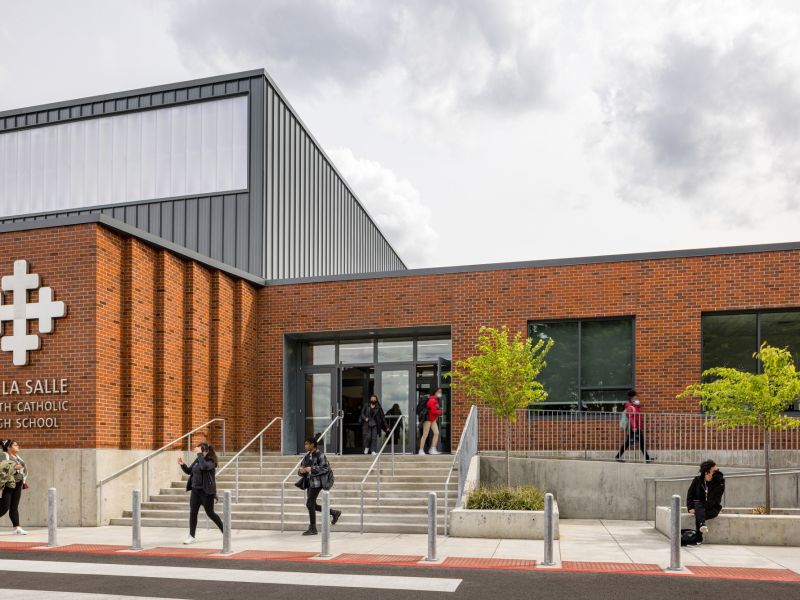 De La Salle (DLS) North Catholic High School is a college preparatory high school in North Portland that educates underserved students throughout the Portland-Metro area. With its mission top of mind, “Enter to learn…learn to serve,” the 20-year-old school spent five years looking for a new space that would allow them to grow and their students to flourish. After reviewing more than 40 sites with their Design Team, the site of the St. Charles Parish on NE Killingsworth was eventually chosen as the ideal space to create a permanent home for DLS.