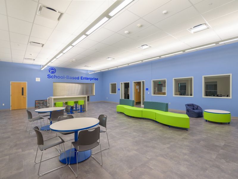 The Sabin-Schellenberg Professional Technical Center consisted of (3) campus locations including the North Campus (Sabin) and South Campus (Schellenberg) in Milwaukie, Oregon and the Land Lab in Clackamas, Oregon. This project at the South Campus included major renovations of classroom spaces, restrooms and common areas, as well as seismic, infrastructure and technology improvements throughout the school.