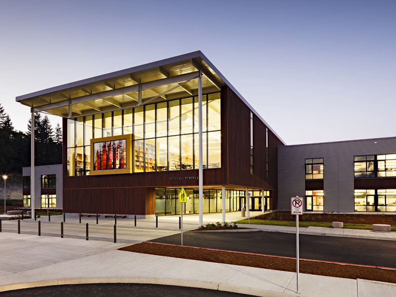 The $27 million, CM/GC project for Vernonia School District involved the construction of a new, 135,000 sf concrete tilt-up K-12 school. The LEED Platinum certified, two-story new building was designed to provide a superior quality educational facility to replace the existing schools affected by the Vernonia flood of December 2007. The project is a result of the collaborative efforts of the Vernonia community, the State of Oregon, and multiple federal organizations. It is also recognized throughout the state and the nation for sustainability, cost effective design and construction, and providing a state-of-the-art facility to a rural community!