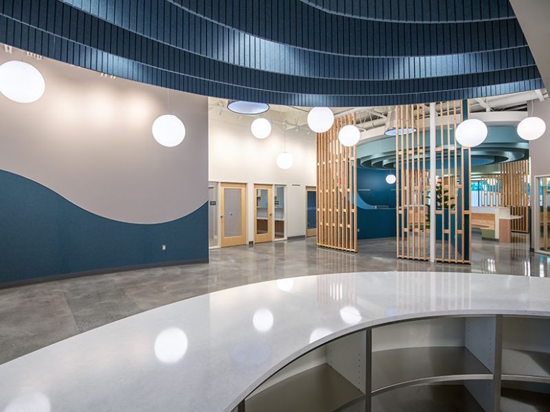 This invaluable 12,000 sf facility (a former furniture store), long planned and supported by community members, is the first year-round shelter in Beaverton. Knowing how important trauma-informed lighting and sustainability was to the City, P&C andInk Built worked together to find ways to deliver an energy efficient facility while staying within the established budget. Located off Beaverton Hillsdale Highway, the shelter features a year-round, low barrier shelter for houseless individuals with bathrooms, showers, laundry, support services, intake areas, clinical spaces and administration offices.Â
