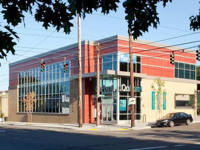 The new, 10,000 sf bank branch and mortgage loan center for OnPoint Community Credit Union is located adjacent to the Montgomery Park Building at NW 27th and NW Vaughn Street in northwest Portland. Designed by Soderstrom Architects, the two-story, masonry and steel building includes such features as a "Swiss Pearl" exterior panel system, a state-of-the-art underground storm water retention system, and earth friendly products such as marmoleum, low VOC paints and adhesives, and an energy efficient lighting control system. P&C was recognized by OnPoint for our outstanding attention to detail and the high quality of construction.